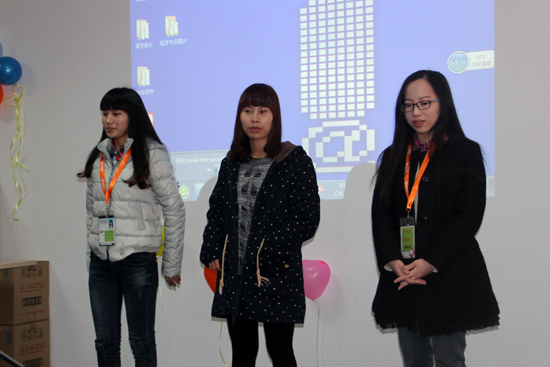 月會(huì)對(duì)我們公司來(lái)說(shuō)是一道普通的家常便飯,但是今天的月會(huì)卻是給大家加菜了。眼前的這三位妹紙便是今天的新菜色之一,所謂秀色可餐,她們或靦腆或風(fēng)趣的自我介紹是否有觸動(dòng)你的小心臟呢?對(duì)于其他菜色想不想一睹為快呢?不過(guò)在開(kāi)動(dòng)前,我們還是要照例來(lái)聽(tīng)領(lǐng)導(dǎo)們嘮嘮嗑了。