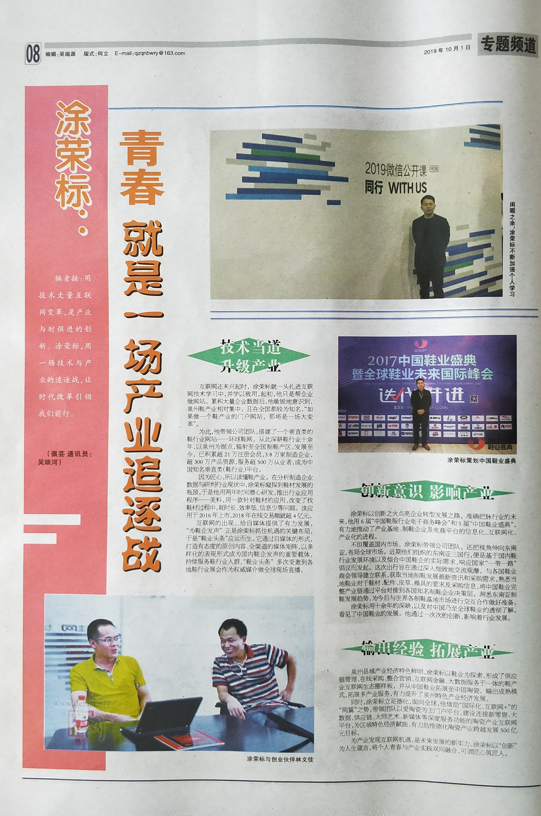 泉州青年報 | 涂榮標:青春就是一場產業追逐戰