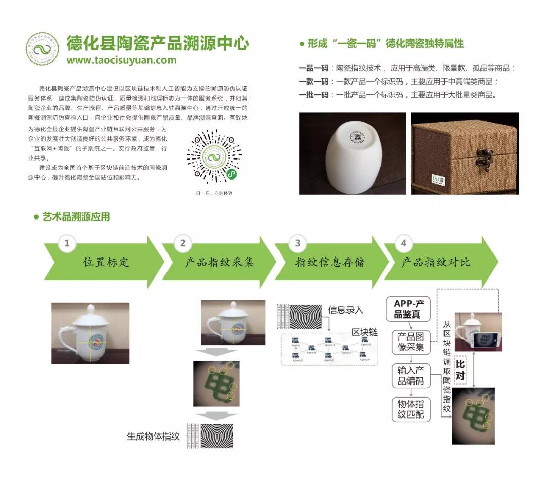 訊網(wǎng)網(wǎng)絡旗下平臺“愛陶瓷”,通過引進電子商務交易技術國家工程實驗室,全面打造陶瓷產(chǎn)業(yè)生態(tài)2.0;在商業(yè)模式上實施全息化、社交化理論,初步實現(xiàn)全息化商品/原材料、全息化企業(yè)、全息化消費者,實現(xiàn)了企業(yè)生產(chǎn)過程可視化,并以社交化為商業(yè)基礎,打造線上、線下一體化的新零售模式;在區(qū)塊鏈的運用上,已經(jīng)與德化縣市場監(jiān)督管理局合作開發(fā)了基于區(qū)塊鏈技術的可視溯源系統(tǒng)及指紋防偽技術。