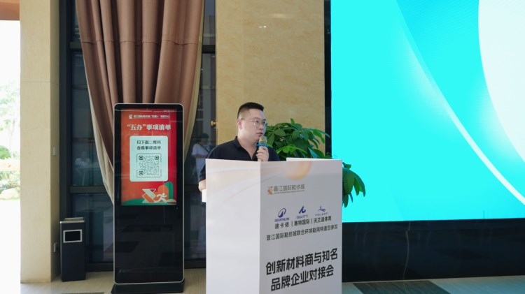 在對接會的“創新材料商演講”環節,八位材料商代表依序登臺,分別向與會嘉賓介紹了各自企業于材料創新領域的研發優勢、產品優勢、企業發展規劃,以及當前產品的發展狀況與潛力。
