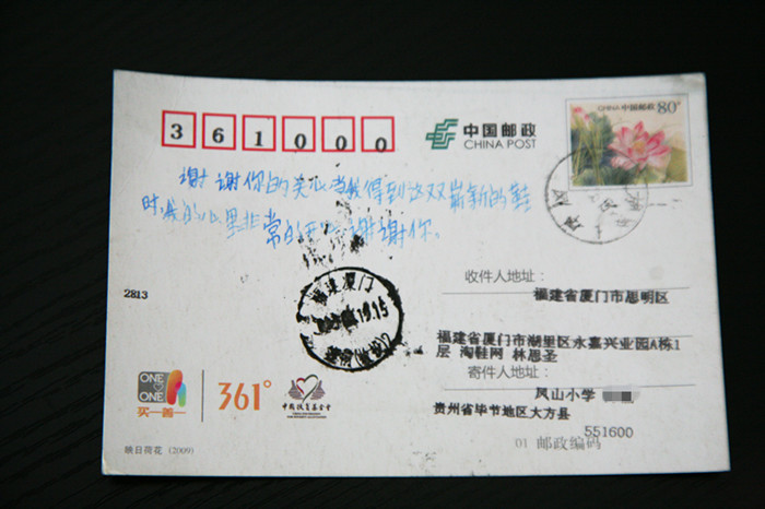 淘鞋網(wǎng)一直致力于愛(ài)心公益活動(dòng),昨日,公司意外的收到了受捐助的山區(qū)孩子們寄來(lái)的禮物——一張張小小的明信片,里面寫(xiě)滿(mǎn)了孩子們感謝的話(huà)語(yǔ)。稚嫩的筆伐里,承載了孩子們滿(mǎn)滿(mǎn)的謝意。